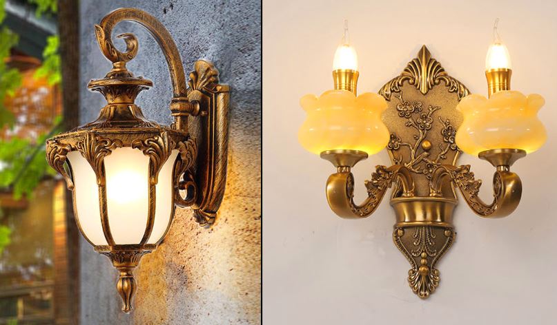 Đèn tường được thiết kế theo phong cách cổ điển sử dụng các nguyên liệu như hợp kim, đồng, đồng mạ vàng. Các loại đèn này thường có nhiều hình dáng để người mua lựa chọn, được thiết kế công phu, cầu kỳ với nhiều loại hoa văn. Giá thành của đèn tường thường rất cao, đặc biệt là các loại đèn tường cổ điển kích thước lớn được thiết kế nhiều chi tiết.