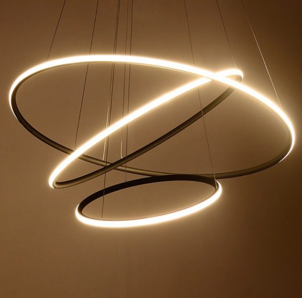 Đèn chùm hình chiếc nhẫn hiện đại: Bạn thích đeo nhẫn hơn? Phiên bản hình tròn này được làm từ cùng một loại nhôm và silica gel, nhưng với các tính năng tròn trịa hơn cho phía trên nhà bếp hoặc bàn ăn của bạn.