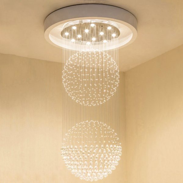 Đèn chùm pha lê hình cầu đôi hiện đại: Giống như giao diện, nhưng không có không gian? Cung cấp cho hai quả cầu pha lê này một ngôi nhà, vì chúng treo những hạt mưa trên thép không gỉ treo tường.