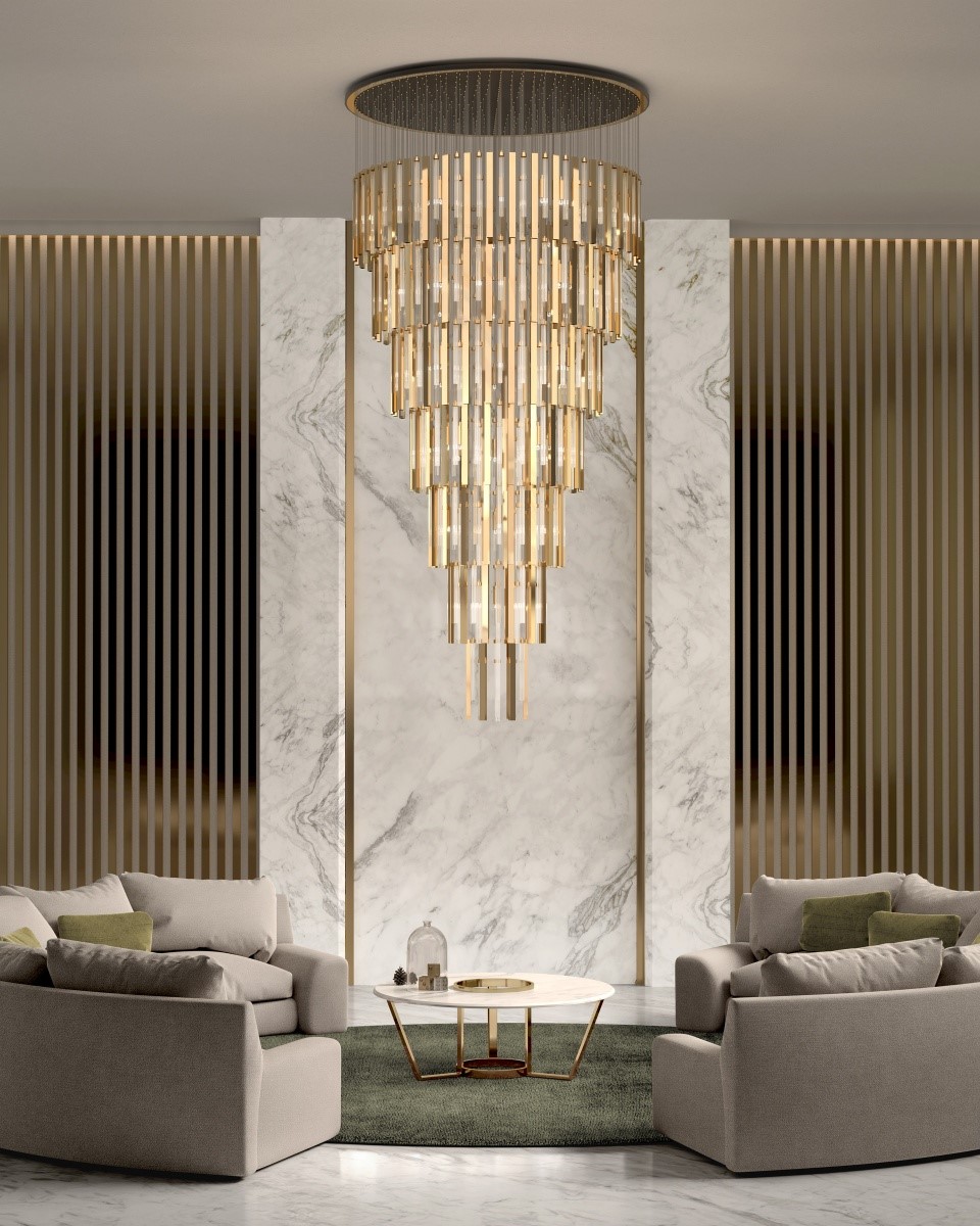 Cách thích hợp nhất để làm nổi bật không gian là sử dụng ánh sáng. Thêm cửa sổ trần, đèn sàn quá khổ, cửa sổ kính suốt từ trần đến sàn và đèn chùm. Mọi thứ khác mà bạn thêm vào sảnh khách sạn của mình có thể là đồ nội thất thiết thực và tiện dụng hoặc các tác phẩm nghệ thuật chỉ đơn giản là hình ảnh.