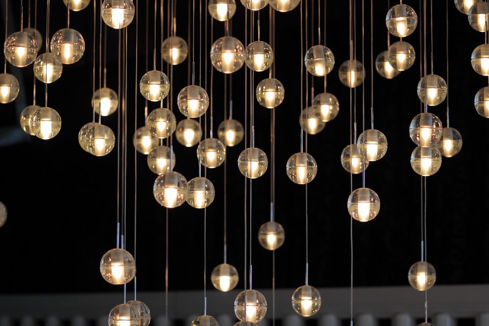 Đèn LED là lựa chọn tiết kiệm năng lượng nhất và nếu màu xanh lá cây là quan trọng đối với bạn thì hãy chọn đèn chùm có thể lắp đèn LED. Một số đèn downlight hiện đại trông đẹp với đèn Edison, trong đó dây tóc vonfram phát sáng màu cam qua hộp kính của bóng đèn.