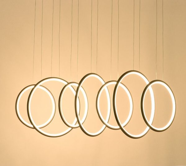 Đèn chùm nhẫn: Đa năng, hấp dẫn và hiện đại hoàn hảo - chiếc đèn chùm nhẫn này là một tác phẩm tuyên bố đẹp thật sự. Tán cây trải dài đến hơn 49 inch chiều dài để phù hợp với những chiếc bàn lớn, rất phù hợp cho những phòng ăn trang trọng với chủ đề trang trí đương đại. Các dây có thể được điều chỉnh chiều dài từ 1 đến 47 inch để phù hợp với nhiều trần nhà.