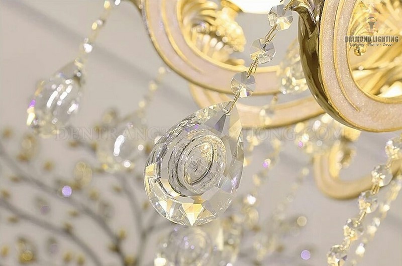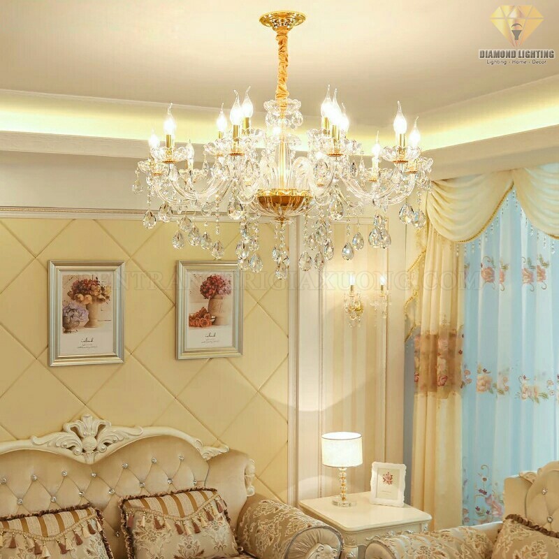 Đèn chùm pha lê nến thuộc dòng đèn chùm pha lê là loại đèn chùm được nhiều gia đình lựa chọn để trang trí cho phòng khách, bởi những chiếc pha lê có sự khuyết tán ánh đèn sẽ tạo nên hiệu ứng ánh sáng vô cùng đẹp mắt.
