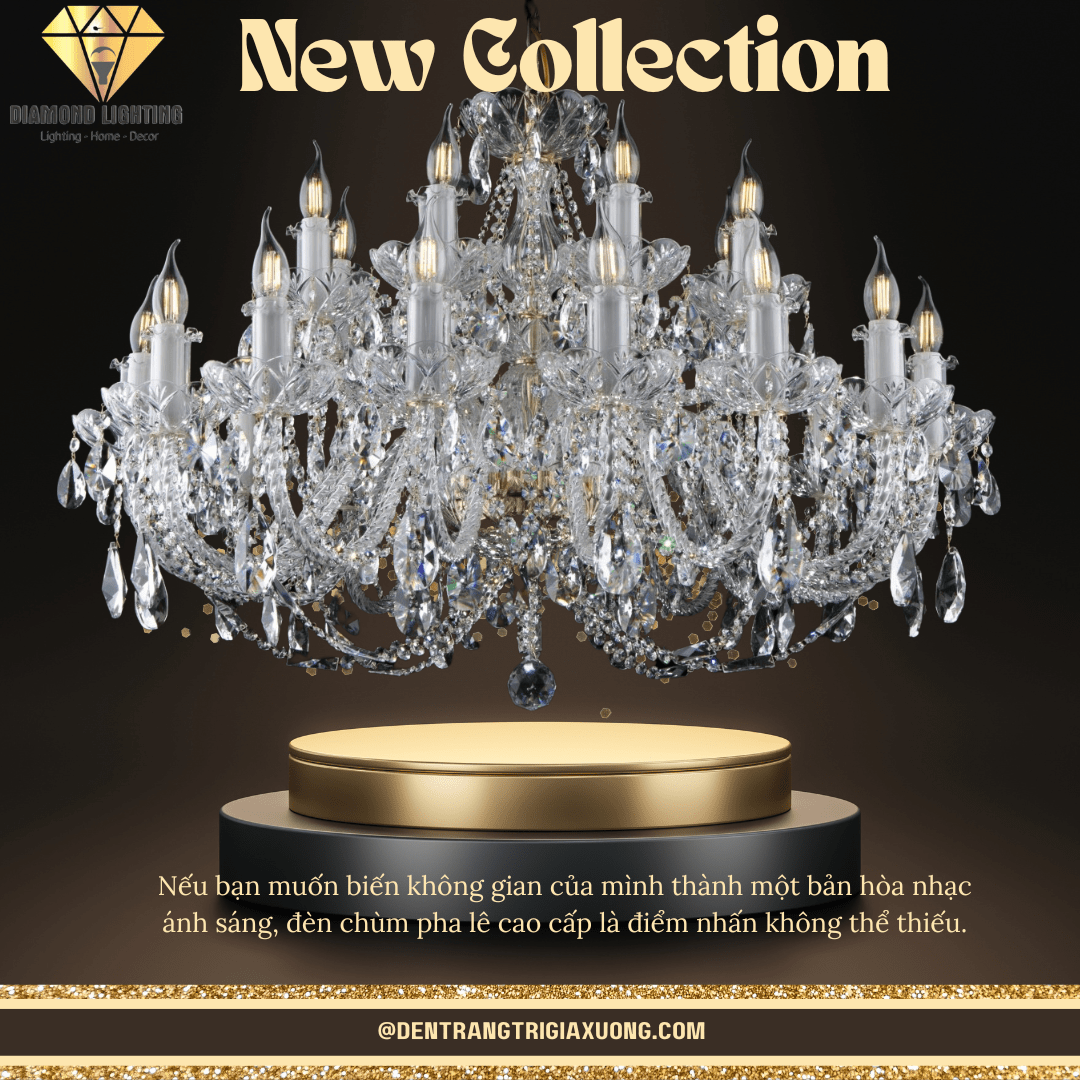 Thiết Kế Đa Dạng: Thị trường đèn chùm pha lê hiện nay cung cấp nhiều loại sản phẩm với thiết kế từ cổ điển đến hiện đại, giúp bạn tạo lựa chọn phù hợp với phong cách nội thất của bạn