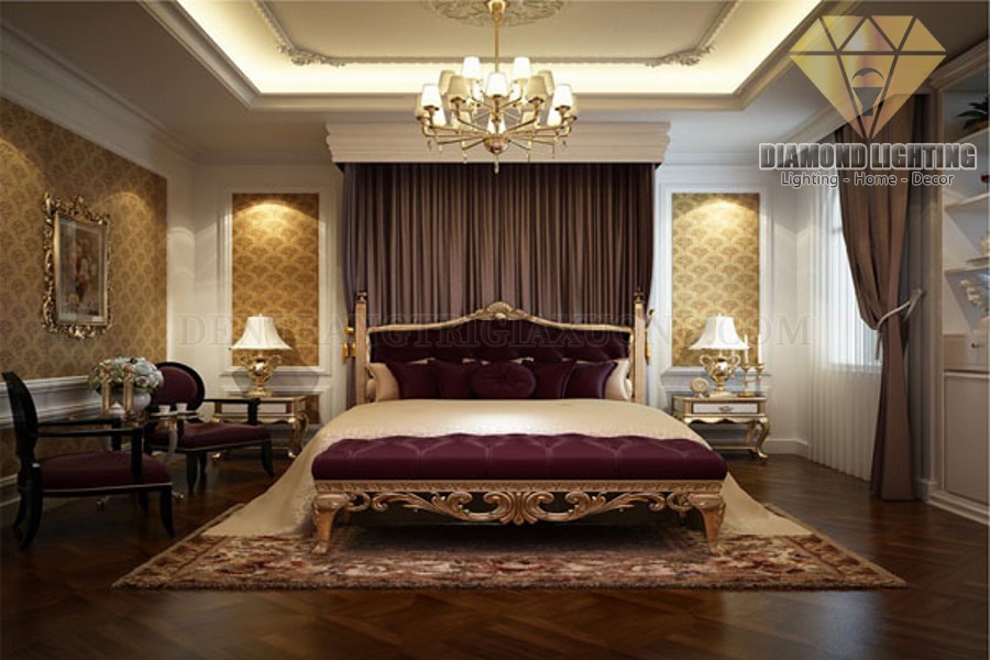 Đèn chùm đồng cổ không chỉ tạo điểm nhấn cho không gian phòng khách mà còn tạo cảm giác ấm áp và dễ chịu cho phòng ngủ, nên cũng rất thích hợp để trang trí phòng ngủ.