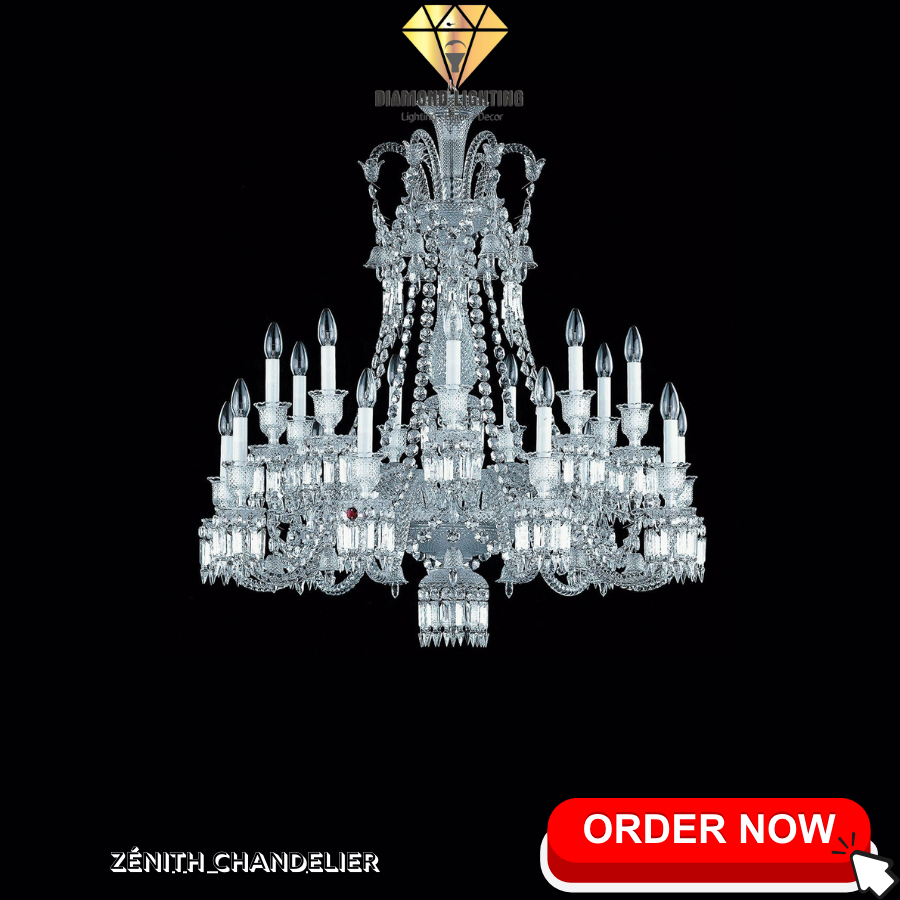 8.ZÉNITH CHANDELIER - CRYSTAL ELEGANCE: Mẫu đèn Zénith là biểu tượng của sự tinh tế với pha lê lấp lánh và thiết kế tinh xảo.