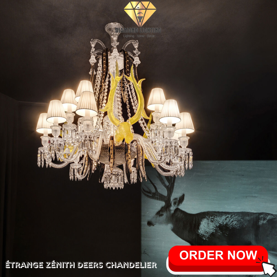 10.ÉTRANGE ZÉNITH DEERS CHANDELIER - WILD ELEGANCE: Étrange Zénith Deers Chandelier mang đến sự hoang dã và độc đáo với hình ảnh hươu rừng và pha lê lấp lánh, tạo nên một không gian đáng nhớ.