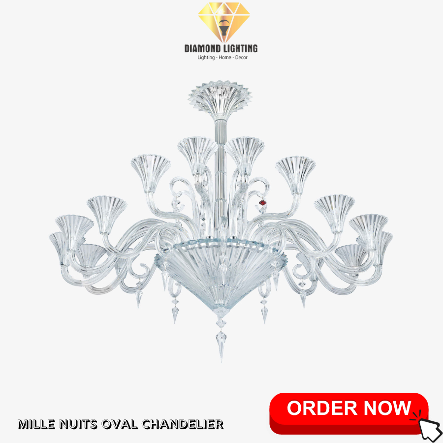 9.MILLE NUITS OVAL CHANDELIER - HARMONY OF OVALS: Với sự kết hợp hoàn hảo giữa hình dáng oval và ánh sáng lấp lánh, đèn này mang lại sự hài hòa cho không gian của bạn.