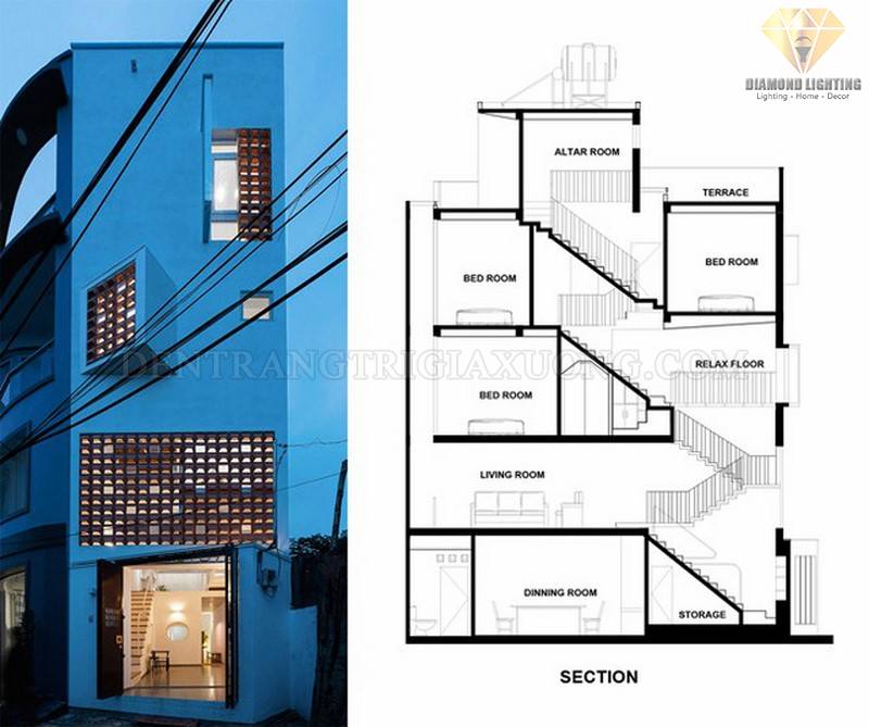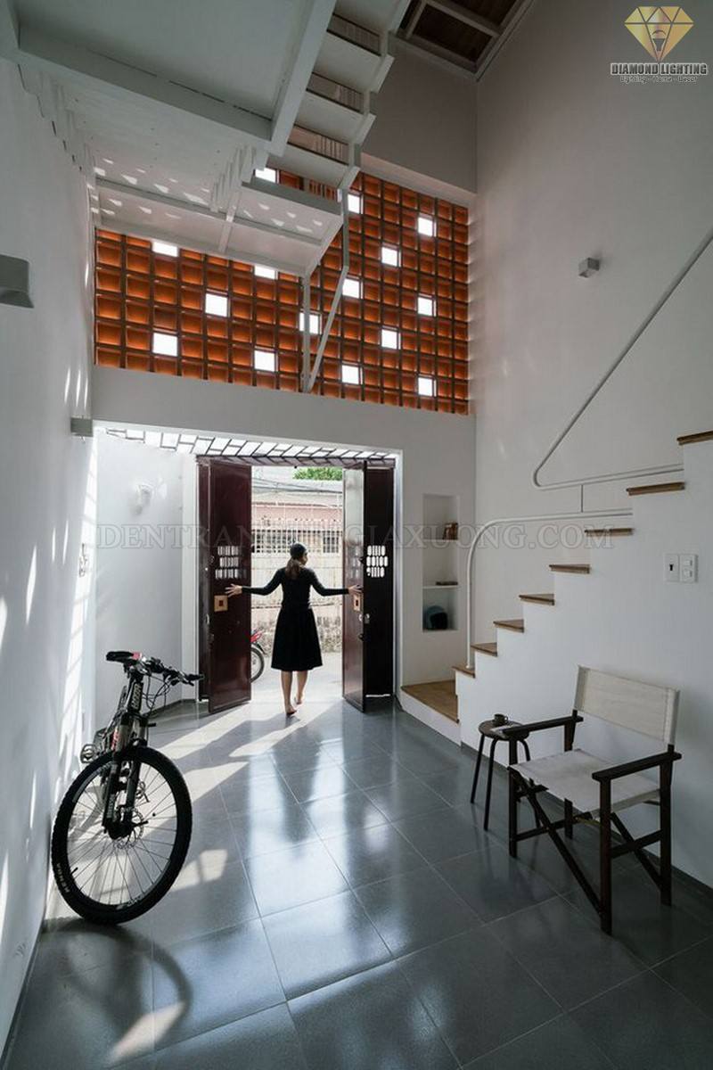 Vậy là một ngôi nhà ống có thiết kế đặc biệt thông minh với những ô sáng ngẫu hứng được xây dựng. Khu vực mặt tiền được ốp gạch lỗ thông gió tận dụng tối đa nguồn ánh sáng tự nhiên và gió trời giúp ngôi nhà luôn thông thoáng.
