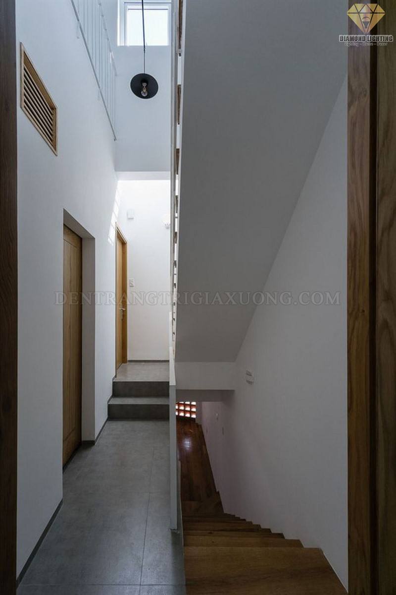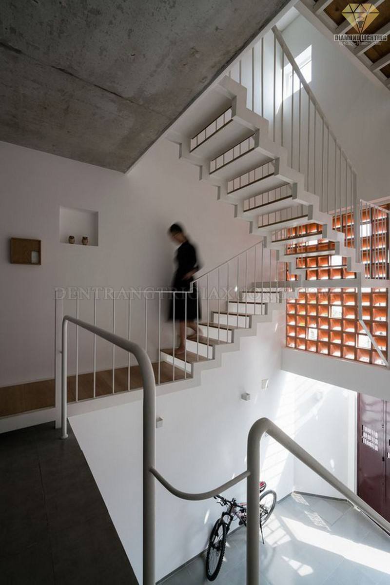 Bên trong ngôi nhà, 6 nhịp cầu thang được thiết kế mỏng manh xen kẽ nhau, vừa biệt lập, vừa liên kết, giúp kết nối các không gian sinh hoạt trong một tổng thể dài và hẹp.