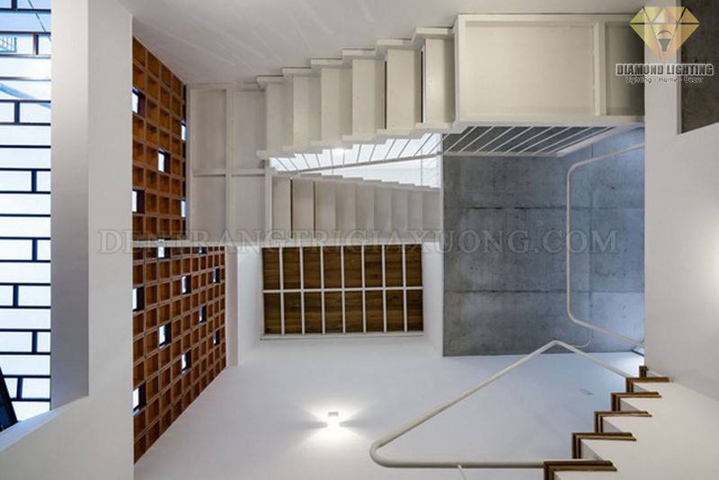 Giếng trời lớn được đặt ngay dọc khu vực cầu thang xuống các tầng.