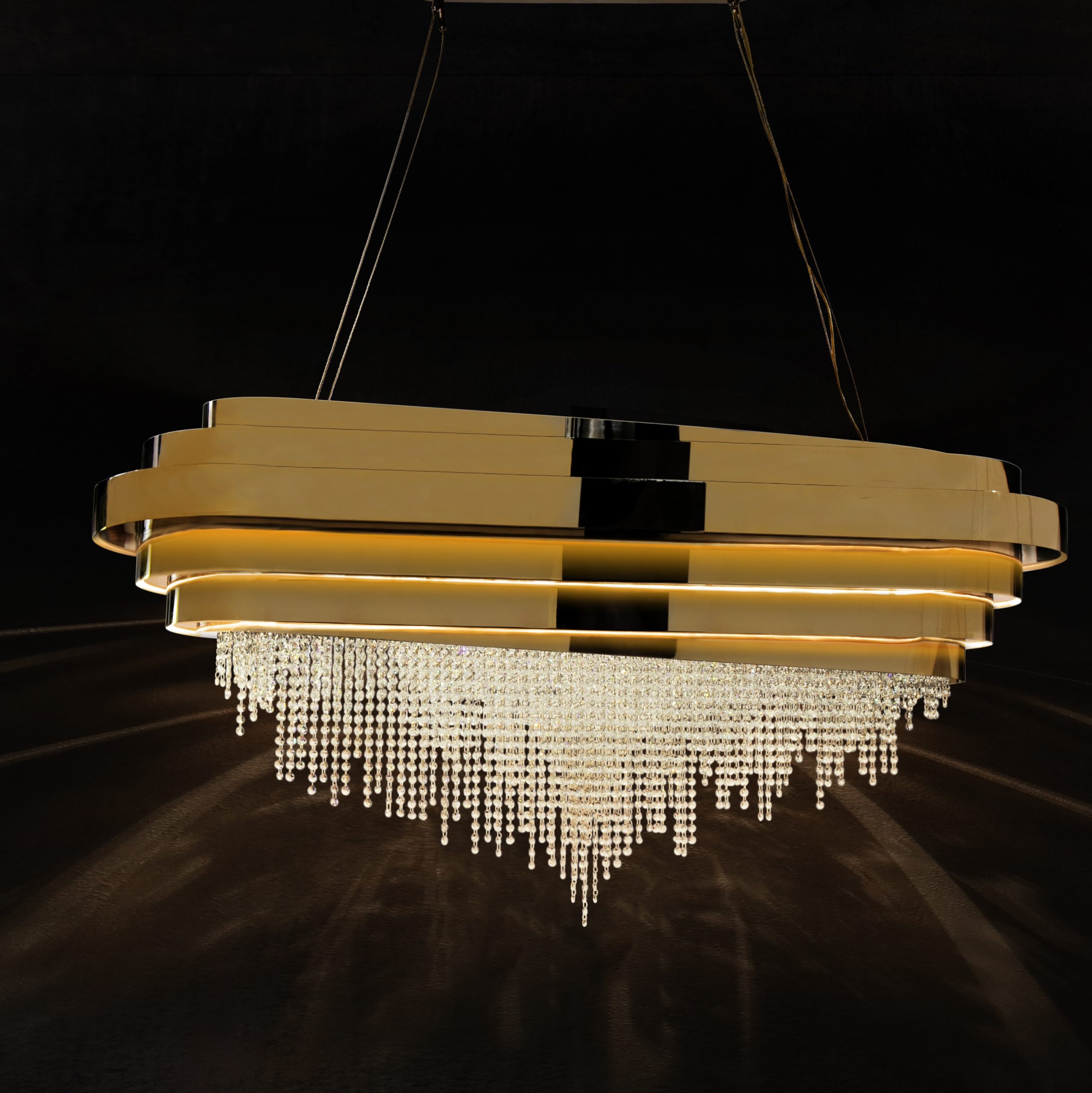 Ngoài thiết kế tuyệt đẹp và có một không hai, chất lượng quan trọng nhất trong những sản phẩm này còn được cung cấp ở các chi tiết sang trọng của chúng. Không có đèn chùm trang trí nào hiển thị sự sang trọng này giống như đèn chùm trang trí Diamond Lighting, với các mức hình chữ nhật bằng đồng mạ vàng thiết kế một mô hình khúc xạ ánh sáng độc đáo và đổ bóng huyền ảo lên môi trường xung quanh những đường cong tuyệt vời.