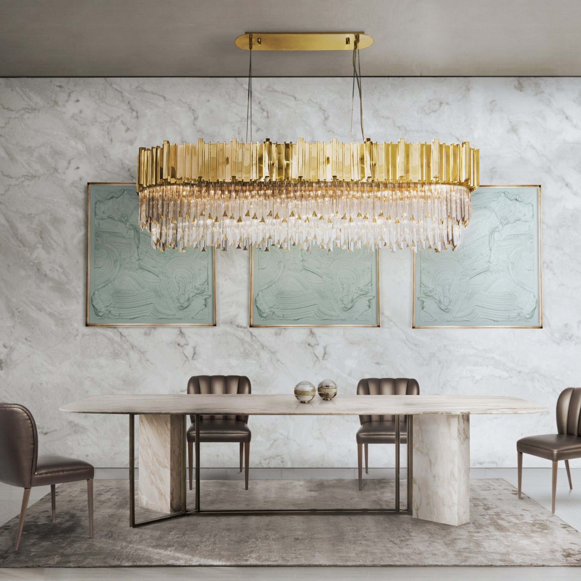 Một trong những phẩm chất được đánh giá cao nhất về đèn chùm trang trí là cách thức tuyệt vời trong đó những kiệt tác ánh sáng này kết hợp nhuần nhuyễn với bất kỳ thiết kế phòng ăn nào.