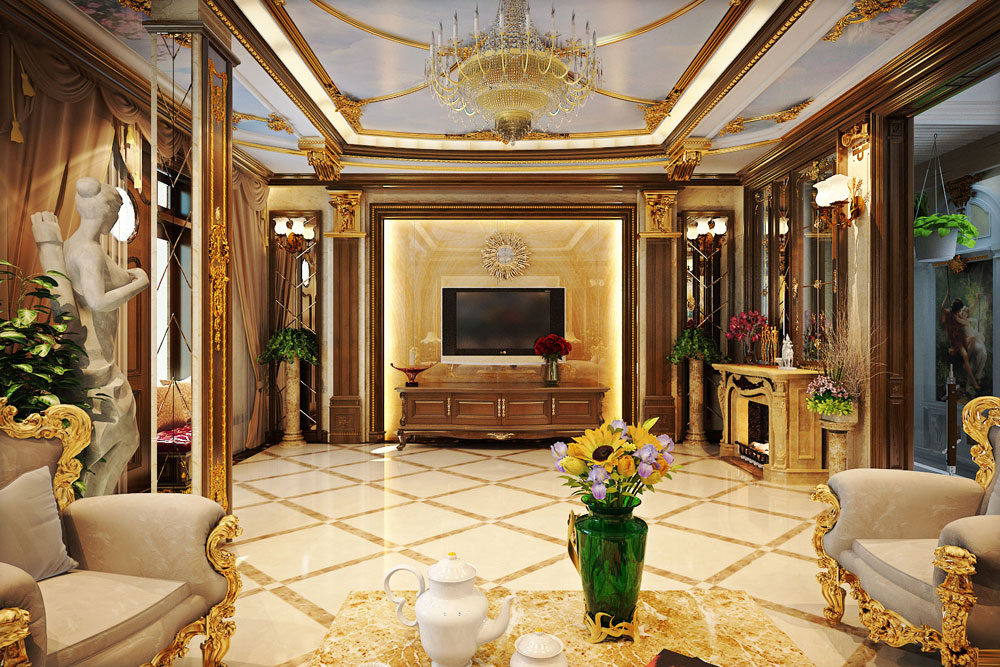 Những chất liệu này mới có thể toát lên vẻ sang trọng và quý tộc, phù hợp với không gian phòng khách có phong cách thiết kế nội thất cổ điển.