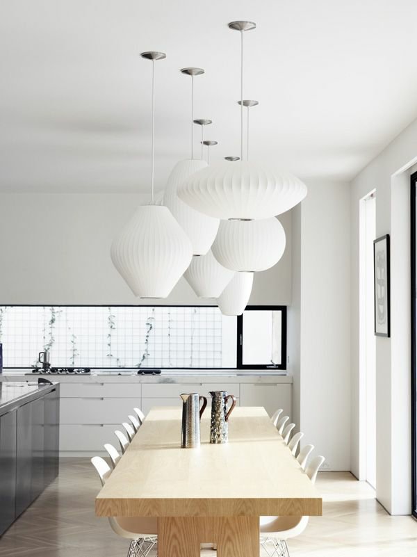 Trái ngược với sự chuyển động năng động của các hình dạng và kích thước khác nhau được nhóm lại với nhau, có điều gì đó cần được nói đến về sự đối xứng. Việc chọn một bộ ba đèn chiếu sáng chính xác giống nhau và treo chúng cạnh nhau ở một độ cao sẽ tạo ra một cái nhìn tinh tế trên bàn ăn mộc mạc.