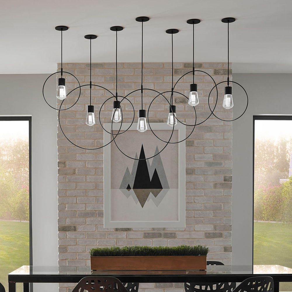Mặc dù bất kỳ chiếc đèn nào đứng riêng lẻ cũng chỉ tốt như một thiết bị chiếu sáng duy nhất, nhưng việc kết hợp nhiều kiểu dáng khác nhau lại với nhau sẽ tạo ra một hiệu ứng tuyệt đẹp trong không gian ăn uống này. Các loại hình dạng kết hợp hoàn hảo với nhau khi treo những mặt dây chuyền cổ điển này ở các độ dài khác nhau.