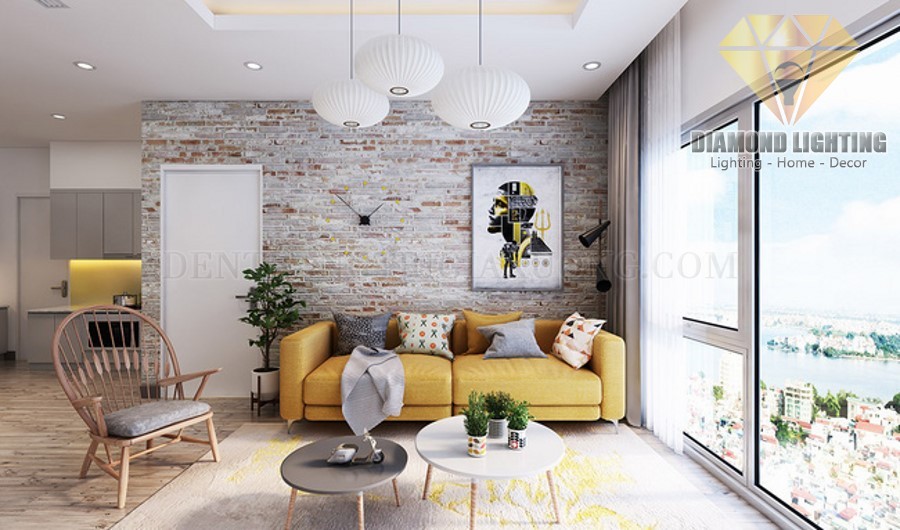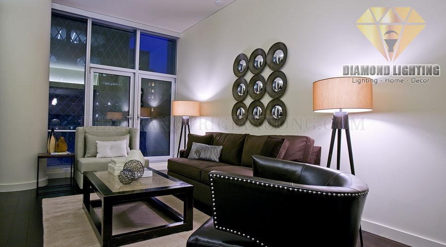 Ngoài ra nếu phòng khách đang còn trống không gian, bạn có thể sử dụng đèn sàn, đèn cây để trở nên ấn tượng hơn.