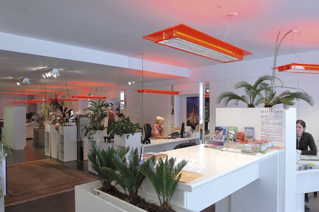 Trong nhà, mọi người có xu hướng chọn ánh sáng có nhiệt độ màu thấp. Kết quả là một ánh sáng vàng ấm cúng, ấm áp và một bầu không khí chào đón. Nhưng trong văn phòng, năng suất được ưu tiên hơn sự ấm cúng. Đó là lý do tại sao nhiệt độ màu cao phù hợp hơn ở đây. Vì vậy, trong văn phòng hoặc không gian làm việc, bạn nên luôn chọn ánh sáng trắng từ trung tính đến mát. Khoa học đã chứng minh rằng mọi người học tập và làm việc tốt hơn trong cái gọi là ánh sáng trắng lạnh và cứng.